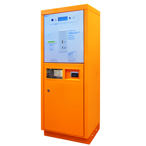 контроллер, жетоноприемник, блоки питания, купюроприемник, диспенсер купюр для выдачи сдачи, GSM модем. Для оплаты стоимости парковки пользователь опускает в кассу жетон, полученный им при въезде на парковку. На жидкокристаллическом дисплее пользователю выдаются сообщения, помогающие произвести оплату. Касса считывает с жетона информацию и рассчитывает стоимость парковки. Пользователь вставляет банкноты в купюроприемник.