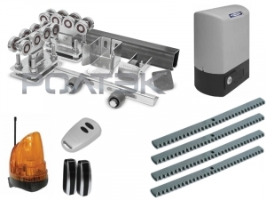 Состав набора комплектующих для откатных (сдвижных) ворот: Привод SLIDING-800 электропривод для откатных (сдвижных) ворот, автоматика DOORHAN - 1 шт, Зубчатая рейка М4 DHRACK - 4 шт, Пульт Transmitter 2-х канальный 433МГц (DOORHAN), для ворот и шлагбаумов - 1 шт, Фотоэлементы PHOTOCELL-N новые,дальность 40м (DOORHAN) - 1 шт, Сигнальная лампа LAMP со встроенной антенной - 1 шт, Ключ-выключатель накладной KEYSWITCH_N - 1 шт, Опора (каретка) роликовая МИКРО для откатных (сдвижных) ворот - 2 шт, Направляющая МИКРО 5,3м балка (шина, профиль) для откатных (сдвижных) ворот - 1 шт, Ролик концевой съемный МИКРО для откатных (сдвижных) ворот - 1 шт, Ловитель нижний МИКРО для откатных (сдвижных) ворот - 1 шт, Заглушка направляющей МИКРО для откатных (сдвижных) ворот - 1 шт, Ловитель верхний составной роликовый для откатных (сдвижных) ворот - 1 шт, Ролик нейлоновый с набором крепежа «стандарт» для откатных (сдвижных) ворот - 2 шт, Кронштейн двойной с боковым креплением для откатных (сдвижных) ворот - 1 шт.