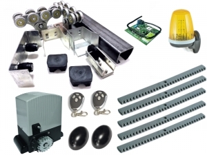 КУ-Эко-6-компл + ASL1000KITFULL Комплектующие для откатных (сдвижных) ворот весом до 400 кг или шириной до 4 м (набор-комплект фурнитуры) c комплектом автоматики AN-MOTORS ASL1000