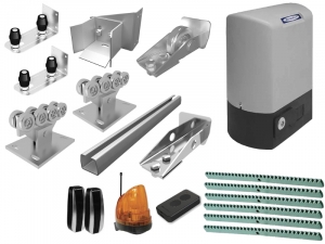Состав набора комплектующих для откатных (сдвижных) ворот: Направляющая балка (шина, профиль) 71х60х3,5 мм для откатных (сдвижных) ворот - 7 м, Опора (каретка) роликовая для балки 71х60х3,5 для откатных (сдвижных) ворот - 2 шт, Ловитель нижний для балки 71х60х3,5 для откатных (сдвижных) ворот - 1 шт, Крышка задняя для балки 71х60х3,5 для откатных (сдвижных) ворот - 1 шт, Ролик концевой в сборе для балки прокатной 71х60х3,5 для откатных (сдвижных) ворот - 1 шт, Устройство направляющее универсальное однорядное для откатных (сдвижных) ворот - 2 шт, Привод SLIDING-800 электропривод для откатных (сдвижных) ворот, автоматика DOORHAN - 1 шт, Зубчатая рейка М4 DHRACK - 6 шт, Фотоэлементы PHOTOCELL-N новые,дальность 40м (DOORHAN) - 1 шт, Сигнальная лампа LAMP со встроенной антенной - 1 шт, Ключ-выключатель накладной KEYSWITCH_N - 1 шт, Пульт Transmitter 2-х канальный 433МГц (DOORHAN)/чёрный, для ворот и шлагбаумов - 1 шт.