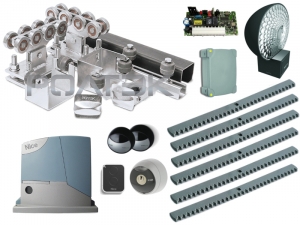 ЭКО7-РОЛТЭК-компл + RB400KCE Комплектующие для откатных (сдвижных) ворот весом до 500 кг или шириной до 4,5 м (набор-комплект) с комплектом автоматики NICE RB400KCE