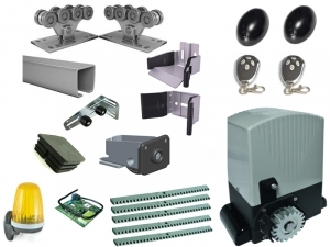 Состав набора комплектующих для откатных (сдвижных) ворот: Фотоэлементы P5103 - 1 шт, Светодиодная сигнальная лампа F5000 - 1 шт, Привод ASL1000KIT электропривод для откатных (сдвижных) ворот, автоматика AN MOTORS - 1 шт, Зубчатая рейка М4 DHRACK - 6 шт, Опора (каретка) роликовая (стальные ролики) SGN.02.150 для откатных (сдвижных) ворот - 2 шт, Ролик опорный SGN.02.320 для откатных (сдвижных) ворот - 1 шт, Улавливатель нижний SGN.02.420 для откатных (сдвижных) ворот - 1 шт, Направляющая балка (шина, профиль) 7 метров SG.02.001-7 (оцинкованная) для откатных (сдвижных) ворот - 7 м, Крышка SGN.02.600 для откатных (сдвижных) ворот - 1 шт, Кронштейн SGN.02.718 для откатных (сдвижных) ворот - 1 шт, Ролик поддерживающий для откатных (сдвижных) ворот - 2 шт, Ловитель верхний SGN.00.500 для откатных (сдвижных) ворот - 1 шт, Упор SGN.02.510 для откатных (сдвижных) ворот - 1 шт.