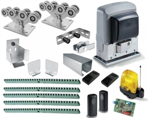 Состав набора комплектующих для откатных (сдвижных) ворот: Зубчатая рейка М4 DHRACK - 5 шт, Ролик концевой "M", без заглушки рельса, для откатных (сдвижных) ворот - 1 шт, Улавливатель концевого ролика "M" для откатных (сдвижных) ворот - 1 шт, Скоба направляющая с 2 роликами, 0-84 мм, для откатных (сдвижных) ворот - 1 шт, Тележка с 8 роликами "M", эконом, до 700кг, для откатных (сдвижных) ворот - 2 шт, Направляющая "М" 6м балка (шина, профиль) для откатных (сдвижных) ворот, оцинкованая - 1 шт, Заглушка для рельса "M", независимая, для откатных (сдвижных) ворот - 2 шт, Радиоприемник встраиваемый AF43RU для 001TOP-432EE, 001TOP-434EE, 001TAM-432SA - 1 шт, Фотоэлементы DIR10 / передатчик, приемник / накладные, дальность 10 м - 1 шт, Лампа сигнальная светодиодная KLED 230 В - 1 шт, Антенна TOP-A433N, частота 433,92 МГц - 1 шт, Пульт ДУ (брелок) TWIN2 2-х канальный . Функция " key code", для ворот и шлагбаумов - 2 шт, Привод BX-78 электропривод для откатных (сдвижных) ворот, автоматика CAME - 1 шт.