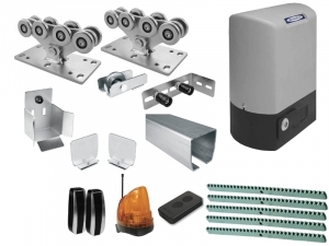 Состав набора комплектующих для откатных (сдвижных) ворот: Привод BX-78 электропривод для откатных (сдвижных) ворот, автоматика CAME - 1 шт, Зубчатая рейка М4 DHRACK - 7 шт, Направляющая "М" 6м балка (шина, профиль) для откатных (сдвижных) ворот, оцинкованая - 1 шт, Тележка с 8 роликами "M", до 800кг, для откатных (сдвижных) ворот - 2 шт, Ролик концевой "M", без заглушки рельса, для откатных (сдвижных) ворот - 1 шт, Улавливатель концевого ролика "M" для откатных (сдвижных) ворот - 1 шт, Скоба направляющая с 2 роликами, 0-84 мм, для откатных (сдвижных) ворот - 1 шт, Направляющая "М" 3м балка (шина, профиль) для откатных (сдвижных) ворот, оцинкованая - 1 шт, Заглушка для рельса "M", независимая, для откатных (сдвижных) ворот - 2 шт, Радиоприемник встраиваемый AF43RU для 001TOP-432EE, 001TOP-434EE, 001TAM-432SA - 1 шт, Фотоэлементы DIR10 / передатчик, приемник / накладные, дальность 10 м - 1 шт, Лампа сигнальная светодиодная KLED 230 В - 1 шт, Антенна TOP-A433N, частота 433,92 МГц - 1 шт, Пульт ДУ (брелок) TWIN2 2-х канальный . Функция " key code", для ворот и шлагбаумов - 2 шт.