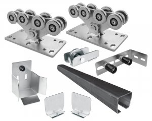 Состав набора комплектующих для откатных (сдвижных) ворот: Тележка с 8 роликами "M", до 800кг, для откатных (сдвижных) ворот - 2 шт, Ролик концевой "M", без заглушки рельса, для откатных (сдвижных) ворот - 1 шт, Улавливатель концевого ролика "M" ...