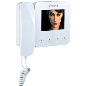KW-E400FC белый Kenwei Монитор видеодомофона, цв. LCD TFT 4" PAL, с трубкой, 2 вызывные панели или видеокамеры, функция не беспокоить, до 4 мониторов в параллель, интерком. питание 220В. выход питания 13,5 В 1,5 А для внешних устройств типа видеокамер и эл. замков.