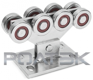 Профессиональная 8-роликовая опора с цельной плитой, обеспечивающей высокую прочность. Конструкция опор обеспечивает их саморегулируемость и постоянный одновременный контакт с направляющей не менее 6 роликов.Опора МИКРО используется в системах с направляющей МИКРО (код 010).Опоры в конструкции откатных самонесущих ворот воспринимают нагрузки от створки ворот и передают их на фундамент. Совместно с направляющей обеспечивают перемещение створки.В опорах используются усиленные подшипники 6201.2RS (ГОСТ 8882-75) со специальной негигроскопичной (не впитывающей влагу) низкотемпературной смазкой (до -60°), которые изготавливаются по специальному заказу РОЛТЭК и имеют маркировку «РОЛТЭК -60°». Комплектующие и фурнитура для изготовления откатных (сдвижных) ворот своими руками.