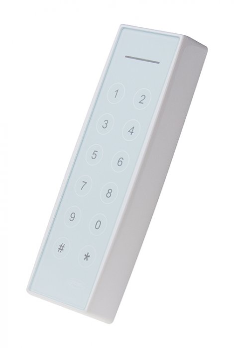 Настенный proximity-считыватель смарт-карт 13.56 МГц с сенсорной клавиатурой; идентификаторы (чтение серийного номера): ISO 14443A c неизменяемым серийным номером, смартфоны на базе ОС Android с функцией NFC, устройства с Apple Pay, ISO-15693 (I-Code SLI), ISO-14443B (на заказ); идентификаторы (в защищенном режиме): Mifare Classic 1K/4K, Mifare Plus 2K/4K, Mifare ID; протоколы: Parsec, Wiegand (от 26 до 58 бит), Touch Memory, OSDP (на базе RS-485); белый пластиковый корпус со стеклянной панелью